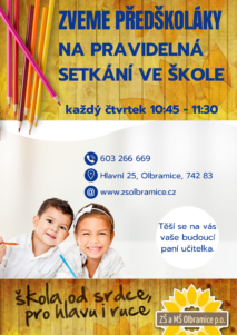 nový školní rok začíná v naší olbramické mateřské škole běžným celodenním provozem v úterý 1. září.