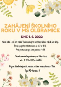 nový školní rok začíná v naší olbramické mateřské škole běžným celodenním provozem v úterý 1. září.